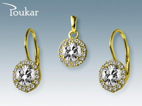 Elegantní souprava ze žlutého zlata ryzosti 585/1000 se zirkonem. Souprava