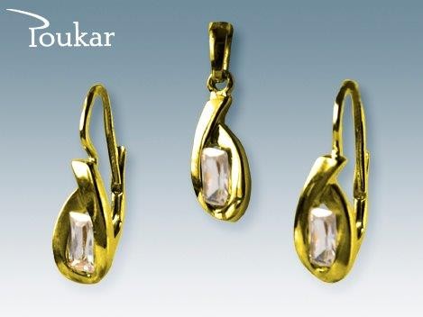 Elegantní souprava ze žlutého zlata ryzosti 585/1000 se zirkonem. Souprava