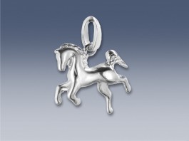 Stříbrný přívěsek ve tvaru koníka. Přívěsek je vyroben ze stříbra ryzosti 925/1000 a pozlacen 18 karátovým zlatem.